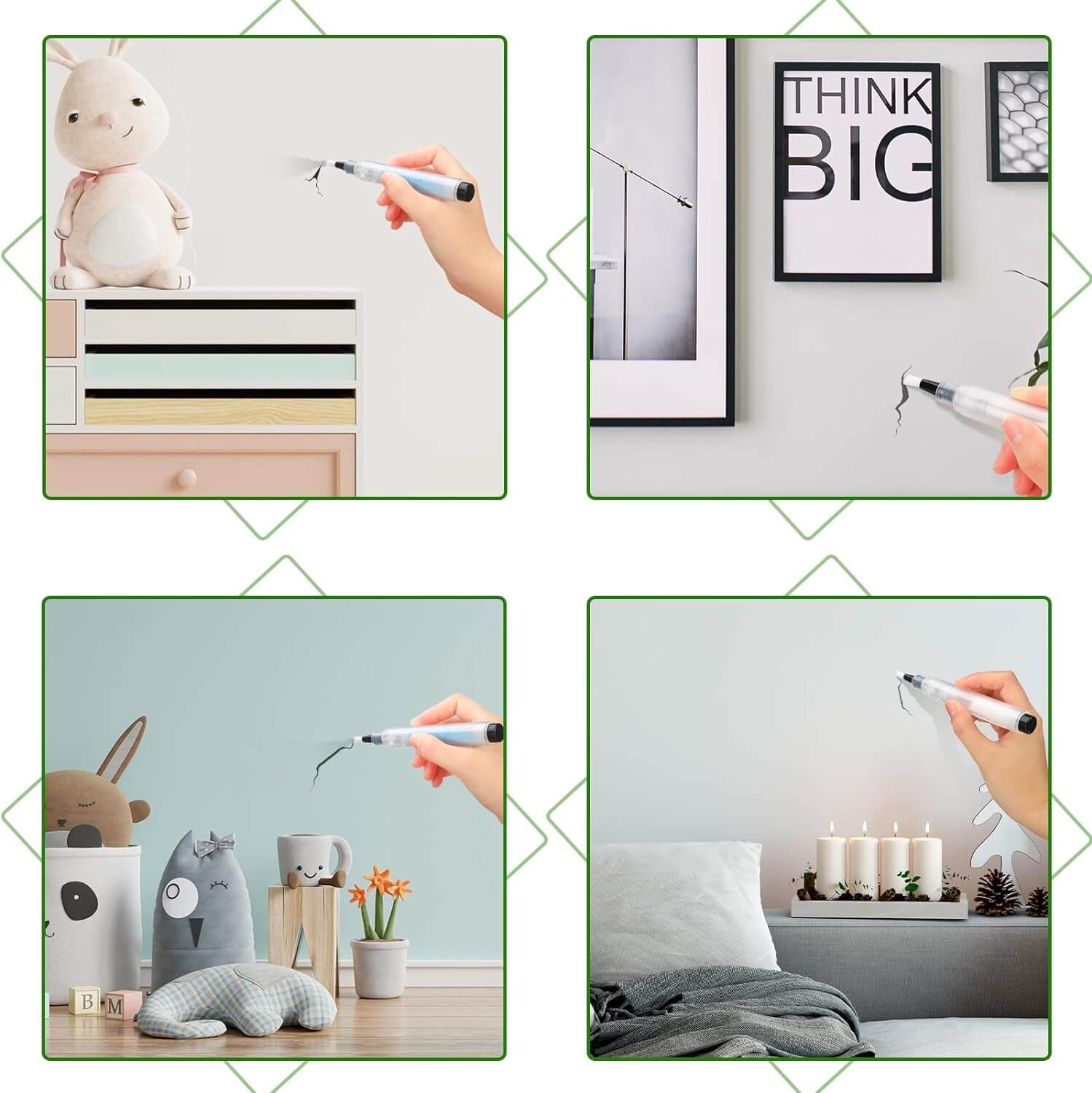 - 【MULTIFUNCTIONAL PAINT REPAIRER】- Our tip of touch up paint pen is a soft brush, perfect for helping you quickly repair scuffs and scratches, chips, or nail holes on walls, trim, ceiling, and doors. Compared with ordinary paint brushes or paint rollers, it is more convenient to use in narrow spaces, without worrying about paint splatters or drips.
